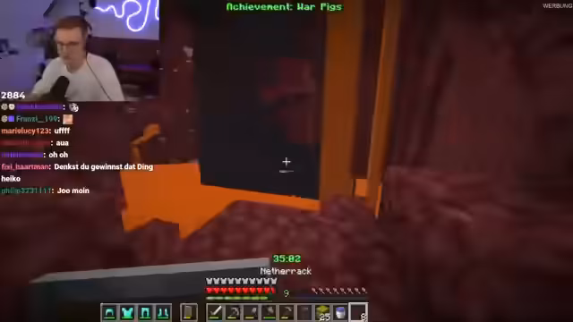 04:09:17Das Battle startet, und der Streamer beginnt, die erste Aufgabe, "Hot Stuff", zu erfüllen. Er muss ein Netherportal bauen, doch der Start ist katastrophal: Er hat kein Feuerzeug und keine ausreichende Ausrüstung. Trotzdem gelingt es ihm nach viel Mühe, das Portal zu aktivieren. Er landet jedoch direkt in einer Lavasee, stirbt und verliert seine gesamte Ausrüstung, was den Start in eine tiefe Krise stürzt.