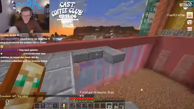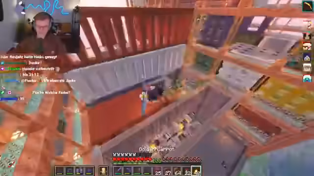 03:41:42Der Streamer berichtet über neue Entwicklungen auf seinem Minecraft-Server. Es ist eine neue Attraktion in Planung, eine Kinderbungee-Jumping-Anlage. Zudem wird eine Schweinetanz-Maschine vorgestellt, deren Geschwindigkeit noch angepasst werden muss. Zukünftige Pläne beinhalten eine große Wild-West-Achterbahn und ein Multiplayer-Spiel. Der Server wird offiziell am Samstag wieder geöffnet, und die Tickets können bereits eingelöst werden.