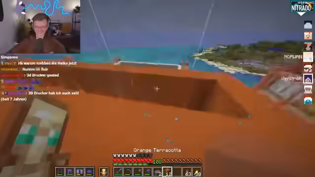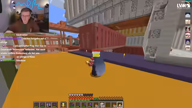 01:59:06Fokus des Streams ist der fortlaufende Bau und die Gestaltung der Minecraft-Basis. Es werden zahlreiche Container platziert und das Design besprochen. Ein besonderes Augenmerk liegt darauf, dass an bestimmten Stellen, wie über einem roten Container, bewusst keine Container gebaut werden, um den Blick auf den Himmel freizuhalten und so 'geilere' architektonische Effekte zu erzielen. Es werden Pläne für einen Innenhof und einen Marktplatz geschmiedet, wobei eine Überdachung für den Innenhof geplant ist, die ebenfalls aus Containern bestehen soll.