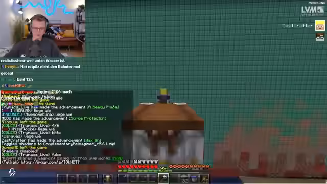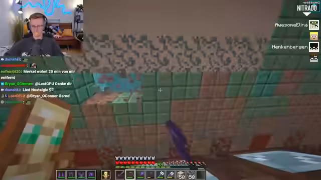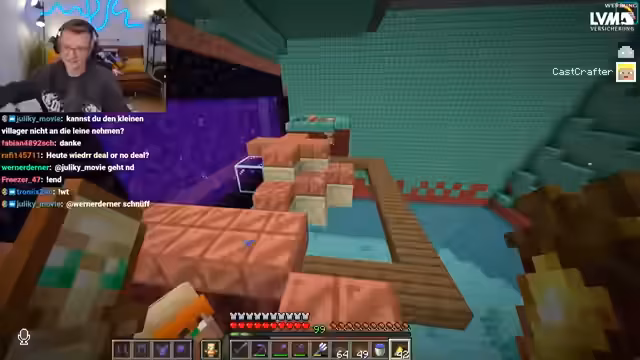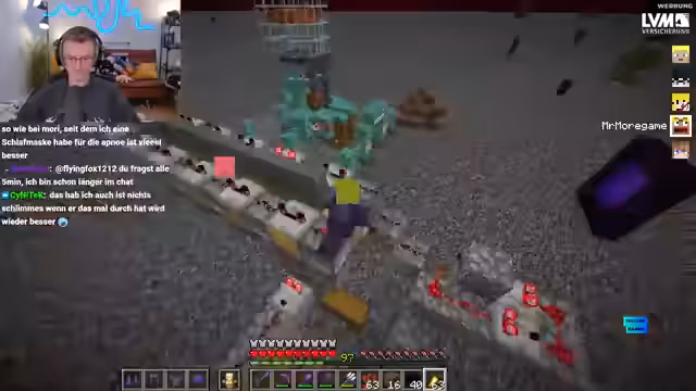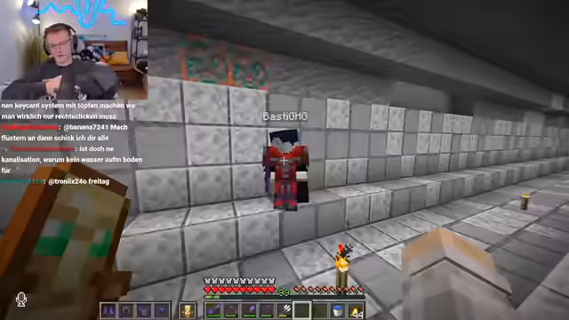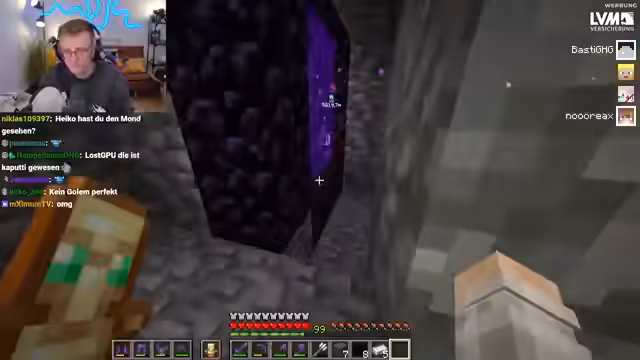09:43:25Hugo befand sich in einer schwierigen Lage und konnte nicht aus einem Nether-Bereich entkommen, während sein Team ihm Hilfe zusicherte. Es wurden verschiedene Strategien erörtert, um ihn zu befreien, darunter das Auslösen von Fallen und das Töten von Mobs. Gleichzeitig wurde bei Heiko ein Problem mit seiner Eisenfarm festgestellt, die durch die Nähe zum Spawn unbrauchbar geworden war und nun komplett neu gebaut werden musste.