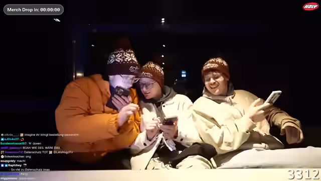 00:17:59Zu Beginn des Streams wurde die XXL Scandi Tour angekündigt, die ohne Sponsoren finanziert wird. Als Aufforderung an die Community wurde der bevorstehende Merchandise-Verkauf um 18 Uhr beworben. Der Kauf von Artikeln wie Mützen, T-Shirts, Socken und einer speziellen Weihnachts-Mütze soll die Tour direkt unterstützen, da die Finanzierung durch die Merchandise-Einnahmen erfolgt. Gleichzeitig wird betont, dass dies nicht nur eine Spendensammlung, sondern auch ein Tausch von Unterstützung gegen Produkte darstellt.