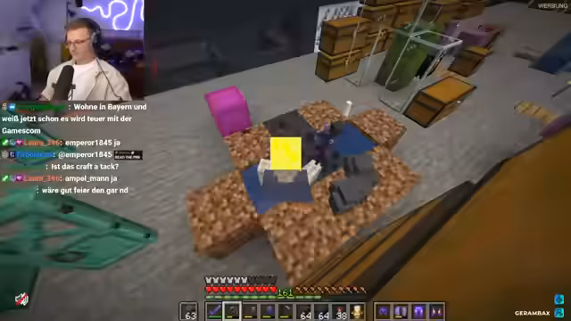 01:41:24Während des Baus tauchen mehrere Gespräche auf. Der Streamer reflektiert über seinen eigenen Alkoholkonsum und berichtet von negativen Erfahrungen, die zu einem völligen Verzicht geführt haben. Er erwähnt auch Hugo und dessen Plan, während der Gamescom auf jeder Party zu sein, was ironisch kommentiert wird. Darüber hinaus geht es um die Teilnahme an Meet & Greets auf der Messe und der Unterschied zwischen kostenfreien Autogrammkarten (Joe Craft) und kostenpflichtigen Sessions. Zudem wird kurz ein Thumbnail-Design für ein Video über das neue Minecraft-Update mit Kupferblöcken besprochen.