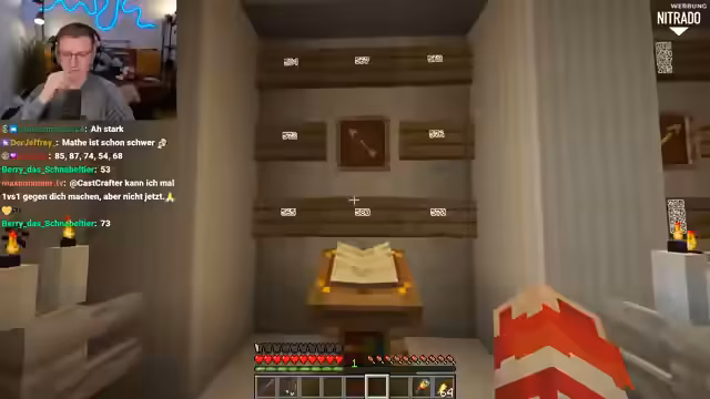 06:11:03Der Fokus liegt auf der Entwicklung neuer Minigames für den Server. Detailliert wird ein Tower-Defense-Konzept gegen Hexen vorgestellt, bei dem Windcharges mechanisch eingesetzt werden. Parallel kommen Ideen für einen Boot-basierten Coin-Pusher mit Kupfergolems und ein TNT-Zerstörungsspiel zur Sprache. Die kreative Blockauswahl bei Bauprojekten wird hervorgehoben, wobei über 40 verschiedene Blocktypen je Bereich zum Einsatz kommen.