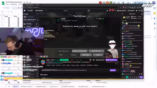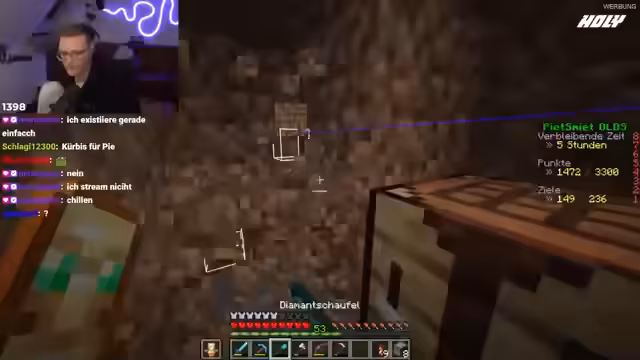 04:21:28Es wird überlegt, welche Ziele in der Overworld als nächstes angegangen werden sollen, darunter die Suche nach einer Trial Ruin, einem Pale Oak, einem Meadow und einem Sniffer. Der Streamer äußert Frustration darüber, dass er Netherbricks für Bugs hält und entschuldigt sich für das Missverständnis. Es wird beschlossen, Jolt-Blöcke für einen Full-Beacon zu sammeln und nach Armadillos Ausschau zu halten, um diese zu züchten und Amadellus-Skewt zu erhalten. Die Gruppe plant, Kupfer zu suchen und Hühnerfleisch zu braten. Ein Zuschauer spendet einen Sub, und der Streamer bemerkt, dass er heute nicht sehr aufmerksam ist. Es wird überlegt, wie viele Amadellus-Skewts für eine Rüstung benötigt werden und beschlossen, genug für Stiege und den Streamer selbst zu sammeln. Als nächster Schritt wird ein Warm Ocean gesucht, und es wird überlegt, ob eine Ziege gefunden und mit einem Boot transportiert werden soll. Die Suche nach Slimes und einem Sniffer wird ebenfalls in Betracht gezogen.