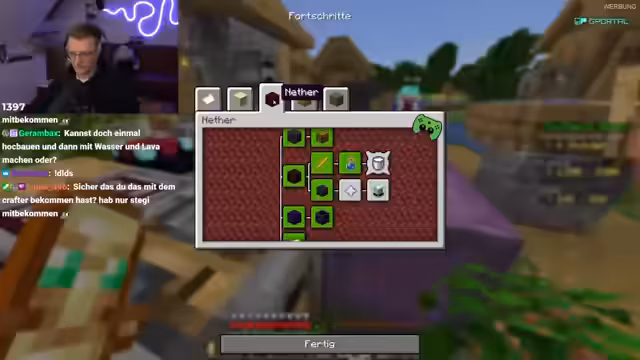05:29:48Es wird eine Kiste für Advancements vorbereitet, die für Stegi gedacht sind. Einer der Spieler befindet sich bei einer Bastion, die nicht viel verspricht, aber dennoch nach Loot abgesucht wird. Verschiedene Items wie Schnauzen-Banner-Vorlage und Rüstungsbesatz werden mitgenommen. Es wird eine Liste durchgegangen, welche Advancements noch fehlen, darunter Zombie-Doktor und This boat has legs. Beacon wird als nächstes Ziel identifiziert. Es wird überlegt, welche Monster noch zu töten sind und welche Nahrungsmittel noch benötigt werden, um bestimmte Advancements abzuschließen. Der Crafter wird vorbereitet, um Ressourcen zu sparen, bis Stegi da ist. Suspicious Stew und Poisonous Potato werden gegessen, um diese von der Liste zu streichen. Es wird überlegt, einen Farmer zu traden und ein Star Trader vorzubereiten.