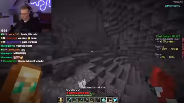 03:54:32Der Streamer bemerkt, dass Pi-Day ist und entschuldigt sich, dies vergessen zu haben, und wünscht den Zuschauern einen fröhlichen Pi-Day. Anschließend wird die aktuelle Situation im Spiel analysiert, wobei die Frage im Raum steht, ob 'Subspace Bubble' angegangen werden soll. Der Streamer wundert sich über die hohe Anzahl an Raketen im Inventar und fragt sich, ob diese durch ein Advancement erhalten wurden. Es wird beschlossen, dass ein Teammitglied Creeper farmen geht, während der Streamer Wither Skeletons farmt, um dann gemeinsam Overworld-Aufgaben anzugehen. Die Diskussion dreht sich um die verbleibenden Nether-Aufgaben, wie das Reiten von Stridern und das Finden von Crying Obsidian und Lodestone. Es wird überlegt, ob eine Bridge Bastion gebaut oder Netherite Ingots für Lodestones verwendet werden sollen. Die Gruppe plant, eine full Netherite Armor zu erstellen und diese dann zu duplizieren, um sie an andere Spieler zu verteilen.