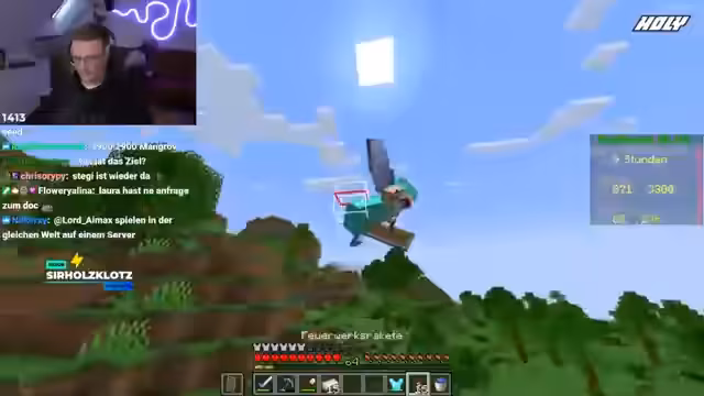 02:59:48Ein Reiter wird gesichtet. Es wird diskutiert, ob es die letzte Welle ist. Ein Barroka wurde noch nicht getötet, was schlecht ist. Es wird überlegt, Wex zu töten. Ein Totem wurde liegen gelassen. Einer der Leute, die die Hände heben, muss getötet werden. Die letzte Wave scheint vorbei zu sein. Ein länger Leben muss noch getötet werden. Es gibt Duel Evoker und Vax. Der Evoker wird angegriffen und es wird versucht, Wex zu töten. Wex werden am besten mit Bogen getötet. Alle aus dem Raid wurden getötet. Es gibt noch eine Wave. Ein Evoker und ein Reiter werden gesichtet. Es wird diskutiert, ob es Überwasser gibt. Es gibt einen Ravenger hinter dem Spieler. Ein Evoker wird getötet. Es ist stressig und die Monster machen viel Schaden. Es gibt Vex über den Spielern. Die Monster müssen getötet werden, damit neue Katzen spawnen können. Es werden viele Pfeile verschossen. Eine Hexe wird gefunden. Glowstone wird benötigt. Schutz 4 wird als Belohnung erhalten. Eine Piercing Armbrust wird gegeben. Es fehlt Gunpowder. Ein Zielblock wird platziert, um einen Bug auszunutzen. Zombie-Villager sollen geheilt werden. Weakness Potion fehlt. Ein Toten wird gefunden.