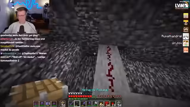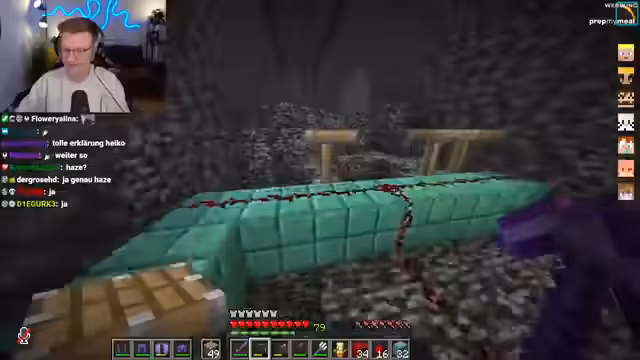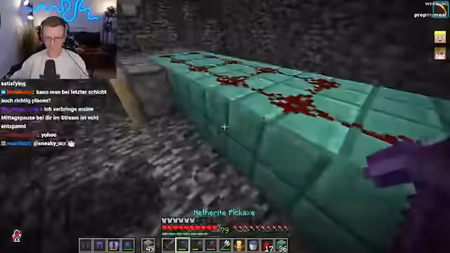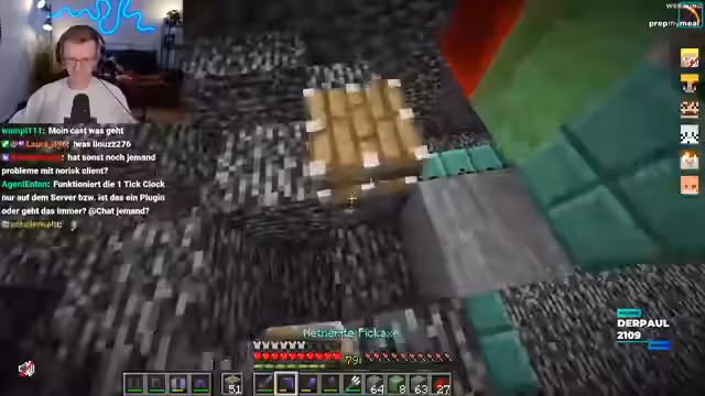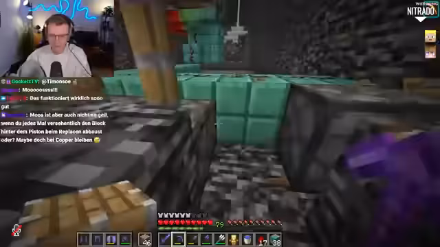 01:49:51Der Streamer erkennt, dass seine aktuelle Methode zur Bedrock-Entfernung nicht optimal ist und es einfacher wäre, die Redstone-Leitung direkt entlang des Bedrocks zu legen, um die Blöcke seitlich zu entfernen, anstatt sie von oben nach unten zu bearbeiten. Diese Anpassung macht den Prozess "tausendmal chilliger" und "insane" effizienter, da die Blöcke sofort entfernt werden. Er demonstriert, wie er die Piston seitlich platziert und die Bedrock-Blöcke direkt breakt. Diese verbesserte Technik ermöglicht es, die unterste Ebene "todes easy" zu entfernen. Er überlegt auch, Moosblöcke anstelle von Kupfer für den Bau zu verwenden, um den Prozess weiter zu optimieren.