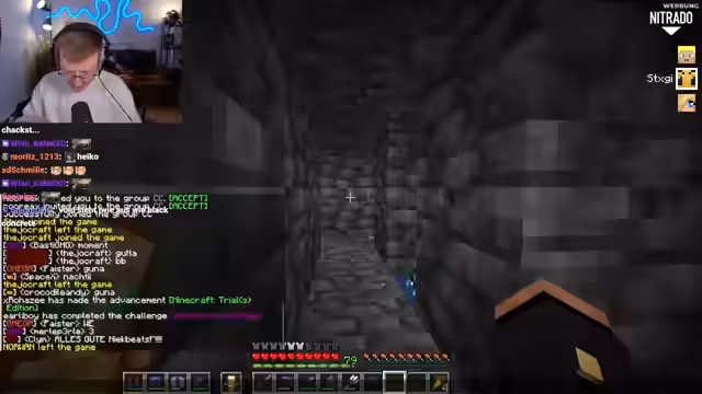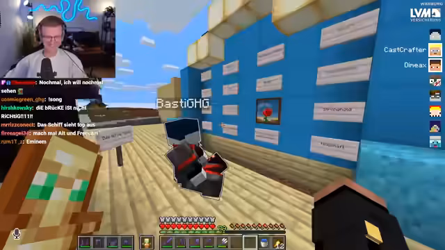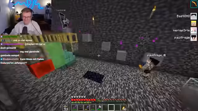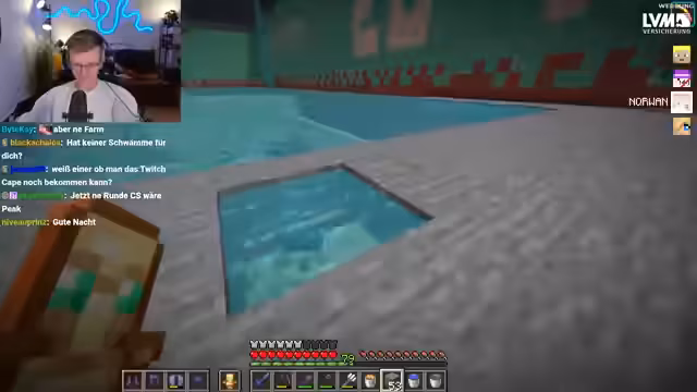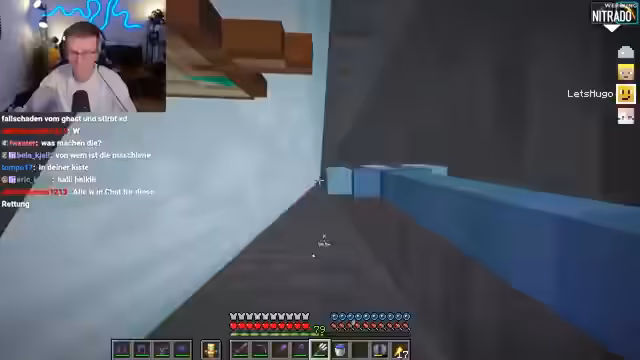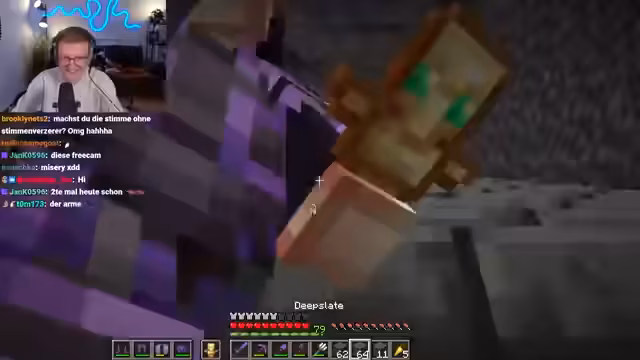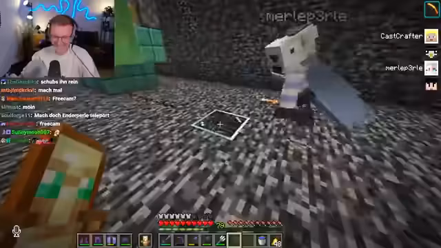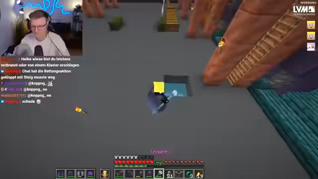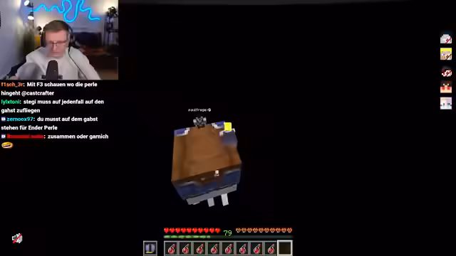 06:39:23Nach Pauls missglücktem Flug versuchen die Streamer ein Enderperlen-Bungee-Jumping. Sie werfen eine Enderperle ins Wasser und lassen sie durch Platzierung eines Blocks erst dann auslösen, wenn sie es wünschen. Dies erfordert großes Vertrauen in denjenigen, der den Block platziert. Der Streamer springt ebenfalls und erlebt ein merkwürdiges Gefühl der Dunkelheit und Angst. Kurz darauf fällt Stegi unfreiwillig ins Void, nachdem er im AFK-Modus herumgesprungen ist. Er landet bei minus 116 Koordinaten und ist in einer sehr gefährlichen Lage, da Happy Ghasts ab minus 120 Schaden nehmen und sterben. Die Gruppe versucht, Stegis Status Chamber zu finden, um ihn zu retten, aber diese scheint nicht aktiv zu sein oder wurde durch seinen Tod deaktiviert. Eine Rettungsaktion mit einem Happy Ghast wird geplant, obwohl Stegi tief unter der kritischen Höhe ist.