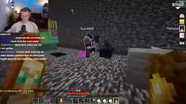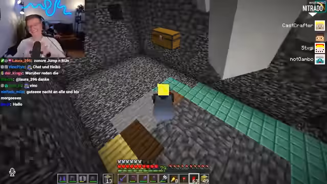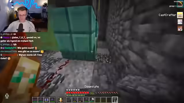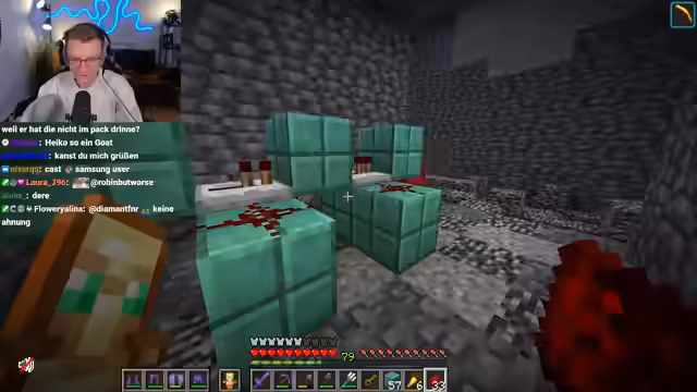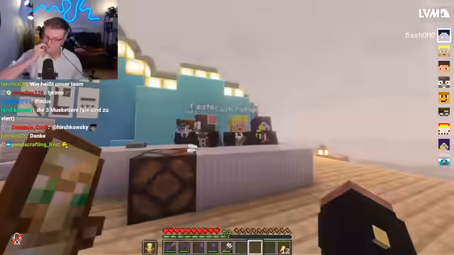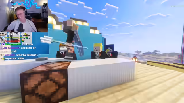 09:43:42Der Streamer kündigt ein komplexes Minecraft-Quiz an, das auch Bezüge zum echten Leben enthält und warnt die Teilnehmer davor, „Crash-Out“ zu gehen. Veli erklärt sich bereit mitzumachen, während Dima und Basti in einem Team sind, obwohl Dima als Speedrun-Experte bekannt ist. Es wird diskutiert, ob es ein Gruppenquiz oder ein Einzelquiz sein soll, wobei sich für Gruppenwissen entschieden wird, um das Format nicht zu überfordern. Die Teilnehmer werden aufgefordert, sich in Teams aufzureihen und eine Catchphrase sowie einen Teamnamen zu präsentieren. Der Chat wird während des Quiz ausgeschaltet, um unerlaubte Hilfe zu vermeiden. Die Teams stellen sich vor, wobei Team 1 sich „Die Redstoner“ nennt und Team 2 „Die drei Muskeltiere“.