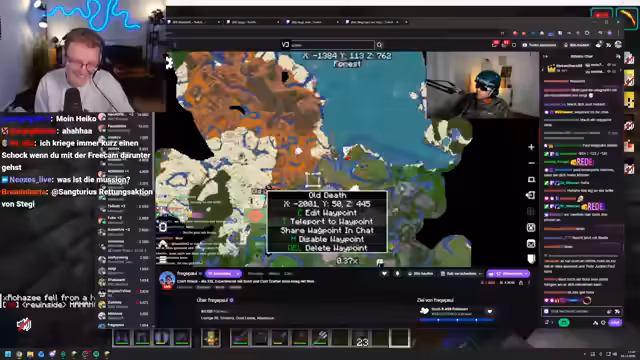 07:21:27Die Mission zur Rettung von Stegi wird mit einer geschätzten Erfolgsquote von 70% bewertet, wobei Paul sogar 90% für realistisch hält. Der Streamtitel „Die XXR-Experimente mit Basti und Kars Crafter, dann Kirek mit Niek“ sorgt für Verwirrung und Belustigung. Stegi hat einen Waypoint als „Stegi tot“ eingespeichert, was Fragen aufwirft. Die Gruppe bereitet sich auf den Flug mit dem Ghast vor, wobei Paul Full Netherite Rüstung und Elytra dabei hat. Es wird über die Möglichkeit diskutiert, dass Heiko zum Heilen mitkommt, falls nötig. Es gibt Bedenken, dass Heiko sich ausloggen könnte, was die Rettungsmission erschweren würde. Die Gruppe muss sicherstellen, dass der Ghast flugbereit ist, da es nur einen Ghast gibt. Die Vorbereitungen für den Start sind hektisch, und es wird beschlossen, einfach loszufliegen und auf das Beste zu hoffen. Die Flugposition wird eingenommen, und es wird geprüft, ob alle notwendigen Gegenstände dabei sind.