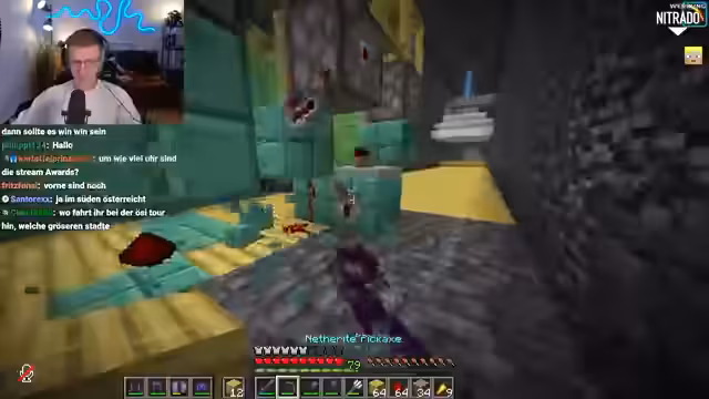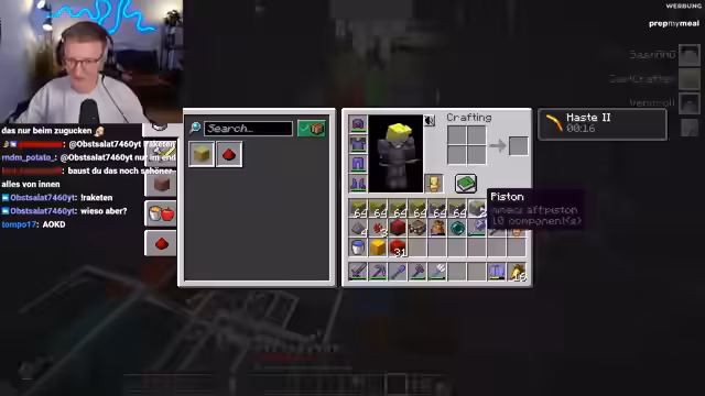 01:08:06Der Streamer demonstriert eine Methode, um Bedrock in Minecraft zu entfernen, indem er einen "Headless Piston" nutzt. Dabei wird ein Piston so manipuliert, dass er zwar ausgefahren ist, sein Kopf aber durch einen Glitch nicht sichtbar ist und sich im angrenzenden Block befindet. Wenn die Maschine, die diesen Piston steuert, ausgeschaltet wird, verschwindet der Bedrock-Block. Diese Technik wird als "so easy" und "wahnsinnig geil" beschrieben, da sie es ermöglicht, Bedrock in jede beliebige Richtung und sogar mit mehreren Piston gleichzeitig zu entfernen. Obwohl das vollständige Entfernen des Bedrocks noch Zeit in Anspruch nehmen wird, wird die Effizienz der Methode hervorgehoben, da sie keine Ressourcen wie TNT verschwendet.