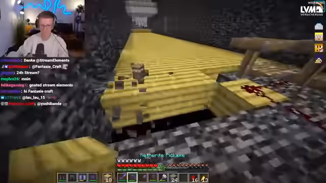 06:33:52Die Streamer enthüllen den Zweck des riesigen Saals: Hier sollen Challenges entstehen, darunter ein Jump'n'Run über dem Void. Der Boden wird entfernt, um den Zugang zum Void zu ermöglichen. Paul, der freiwillige Pilot, fühlt sich absolut bereit für die Aufgabe, mit dem Happy Ghast durch das Loch zu fliegen. Er bittet um ein Countdown-Signal und ist sich der Risiken bewusst, dass er sich an der oberen Kante der Decke halten muss, ohne sich den Kopf zu stoßen. Keiner weiß genau, wie weit man nach unten fliegen kann, bevor Schaden auftritt. Paul beschreibt seine Sicht im Void: ein oranges Licht in der Ferne, wahrscheinlich der Horizont, und keine sofortigen Schäden. Er testet die Tiefe und beginnt bei etwa minus 80 Koordinaten Schaden zu nehmen. Bei minus 120 stirbt der Happy Ghast und Paul verbraucht ein Totem, was zu einer kritischen Situation führt.