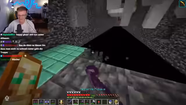 12:05:51Der Abschluss des Bedrock-Abbaus wird gefeiert, da die letzten sieben Blöcke entfernt werden. Die Aktion wird als „surreal“ und „gruselig“ beschrieben, da das Arbeiten über dem Void ein ekliges Gefühl hervorruft, besonders im Vergleich zum End. Die Angst vor dem Herunterfallen ist omnipräsent, da ein Sturz ohne Raketen tödlich wäre. Ein früherer Vorfall, bei dem Stiggy alle Items im Void verloren hat, wird als warnendes Beispiel genannt. Die freigelegte Fläche soll nun für ein Jump'n'Run genutzt werden, was die Vorfreude auf die neue Herausforderung steigert. Die Zusammenarbeit beim Abbau wird als effizient beschrieben, wobei die Anwesenheit anderer die Arbeit verlängerte, da man sich ablenken ließ. Die visuelle Transformation des Bereichs wird als beeindruckend empfunden, und es wird bereits über die zukünftige Gestaltung und mögliche Gefahren des Jump'n'Runs spekuliert.