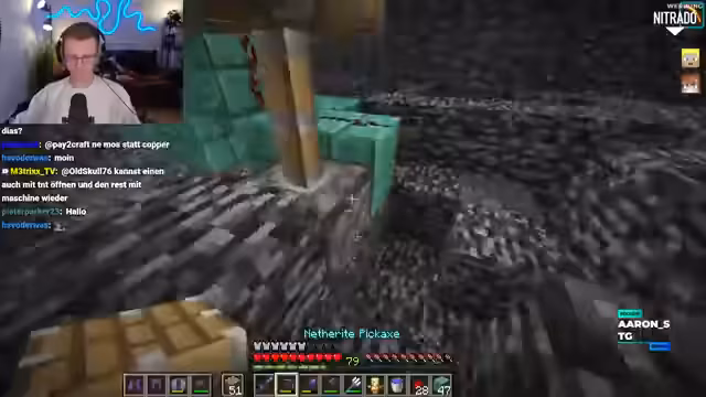 08:46:52Der Abbau von Bedrock-Blöcken erweist sich als äußerst schwierig und erfordert präzises Timing und Teamwork. Es wird diskutiert, wie man Blöcke in der Luft ersetzt, was als eine Art 'Trainings-Akt' beschrieben wird, ähnlich wie Naruto, der Blätter spalten musste. Die Spieler überlegen, wie sie am besten eine Linie von Bedrock-Blöcken entfernen können, um effizient voranzukommen. Eine Idee ist, dass sich jemand unter den Happy Ghast setzt, um die fallenden Kolben aufzufangen. Die Arbeit wird als stressig empfunden, besonders wenn mehrere Spieler gleichzeitig daran arbeiten, da man sich gegenseitig stören kann. Es wird vorgeschlagen, dass ein Spieler die Hauptarbeit übernimmt, um die Effizienz zu steigern und Frustration zu vermeiden. Die Schwierigkeiten beim Bedrock-Abbau und die Notwendigkeit, sich ständig an die Gegebenheiten anzupassen, werden deutlich.