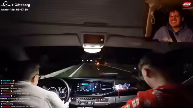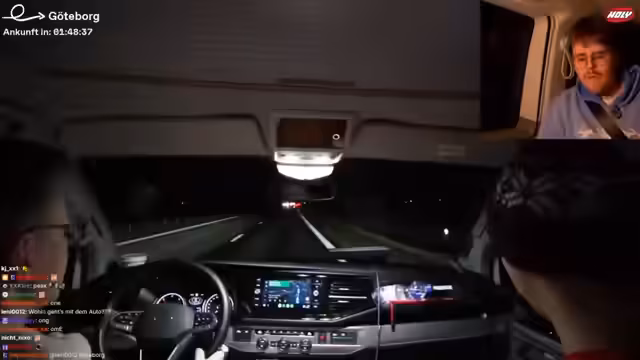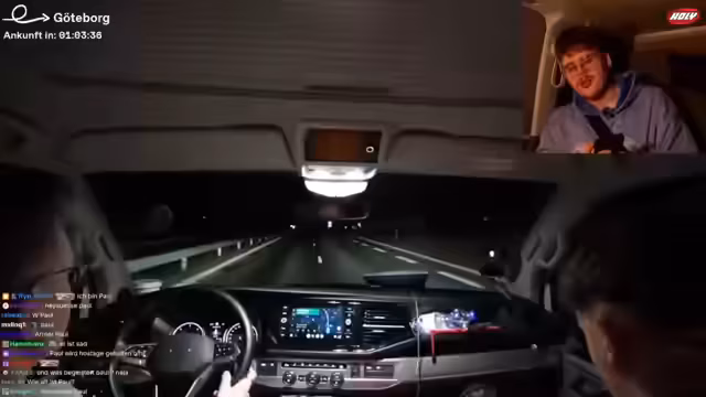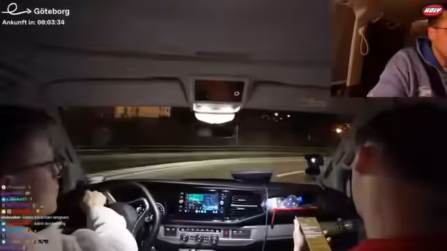 11:59:00Der Stream setzt sich während der Fahrt zum heutigen Quartier fort. Der Streamer berichtet, dass sie für die Nacht ein Hausboot gemietet haben und zukünftige Pläne wie eine mögliche Spieleabend diskutieren werden. Das Team testet die Verbindung zur Starlink-Internetverbindung und bereitet sich auf den Aufenthalt vor. Es werden technische Details wie das Navigieren durch Göteborg und die notwendigen Koordinaten für den Zugang angesprochen.