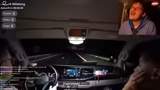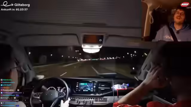 03:30:40Nach zahlreichen körperlichen Herausforderungen machen die Streamer eine Pause und reflektieren die bisherige Tour. Sie erwähnen körperliche Beschwerden und technische Unannehmlichkeiten, darunter eine Panikattacke und ein gestörter Akku. Im Anschluss geht die Fahrt weiter nach Göteborg in Schweden, wobei sie eine neue Grenze überqueren und sich auf die nächsten Stationen der Skandi-Tour vorbereiten.