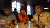 11:38:56Die Gruppe überlegt, wie viel Trinkgeld sie für den ausgezeichneten Service im Restaurant geben soll. Dies wird zu einem interaktiven Spiel mit dem Kellner umgewandelt. Er soll eine Zufallszahl zwischen 0 und 100 auswählen, die dann als Prozentwert für das Trinkgeld in Euro verwendet wird. Nach einer kurzen, turbulenten Regel-Erklärung und mehreren Versuchen gibt der Kellner 60 als Zahl an, was 60 Euro Trinkgeld bedeutet. Diese Geste wird mit Applaus und Beifall im Stream belohnt.
