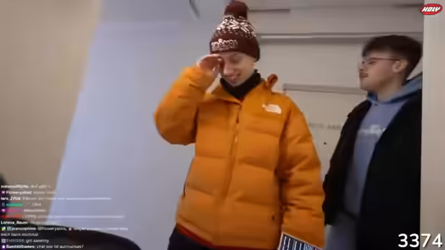 12:06:02Während der Ankunft am Hausboot begegnet das Team zwei jungen Männern aus Österreich, die eine Montagearbeit in der Region verrichten. Es entwickelt sich ein spontanes Gespräch, in dem der Streamer die Jungen mit Merchandise-Produkten überrascht. Ein zufälliger Zuschauer bestellt sogar eine Mütze, was als Symbol für die positive und direkte Interaktion mit der Community gesehen wird.