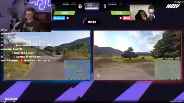 02:39:01Es kommt zu Verwirrung, da das Match von Lenny nicht gestreamt wird, während andere Spiele parallel laufen. Der Streamer ärgert sich darüber und versucht, den Stream auf das richtige Match umzuschalten. Um die Wartezeit zu überbrücken, initiiert er eine Runde GeoGuessr mit der Community, um gemeinsam zu spielen und sich zu verbessern.