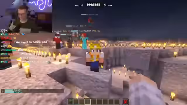 03:28:28Der Fokus wechselt zum Minecraft-Creative-Server des Streams. Der Streamer zeigt die beeindruckenden Bauarbeiten, die von den Teilnehmern geleistet werden, wie einen massiven Spawn-Bereich und individuelle Bauprojekte. Er teilt mit, dass am nächsten Tag ein Build Battle stattfinden wird und die Server-Version auf 1.21.1 läuft, weshalb neue Blöcke aus 1.21.4 noch nicht verfügbar sind.