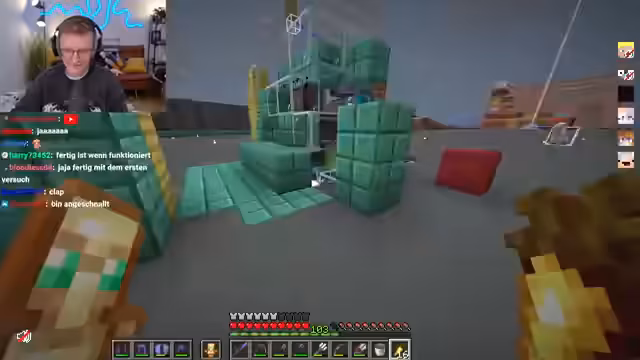 03:49:18Nachdem die Falle für den 'Happy Ghast' weitgehend fertiggestellt wurde, beginnt die Phase der finalen Tests und der Fehlerbehebung. Der Redstone-Mechanismus, der dafür sorgen soll, dass die Falle korrekt auslöst, erweist sich als extrem fehleranfällig. Mehrmals muss der Streamer den Aufbau anpassen, da Konfigurationen fehlerhaft sind oder die Signale nicht korrekt weitergeleitet werden. Das Ziel ist, dass der Ghast sich in einer Ladephase befindet und die Falle auslösen kann, ohne dass er dabei die gesamte Konstruktion zerstört. Die Stimmung ist geprägt von Anspannung und wiederholten 'Redstone-Fehlern'.