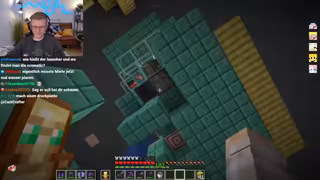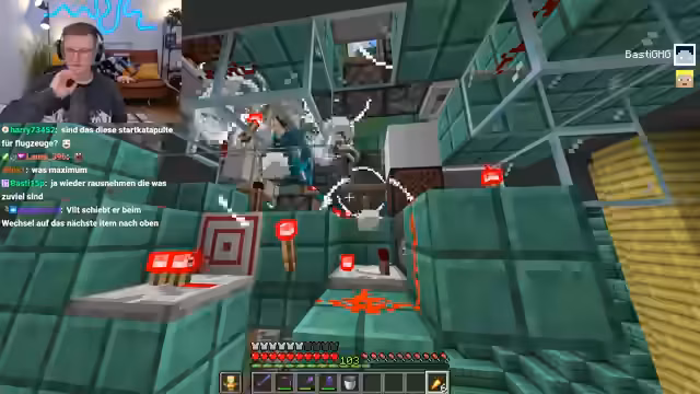 07:40:48Ein komplexes Redstone-System zur Steuerung eines Launchers wird entwickelt und getestet. Dabei kommt es wiederholt zu Funktionsstörungen. Der Streamer versucht die Lampe zu entfernen und den Block zurückzusetzen, doch das System funktioniert weiterhin nicht wie gewollt. Mehrfache Tests mit den Pistonen und Lampen führen zu Frustration, da der Launcher nicht schießt und der Grund dafür unklar bleibt. Schließlich scheint der Fehler behoben zu sein, das System läuft wieder und die Konfiguration ist stabilisiert.