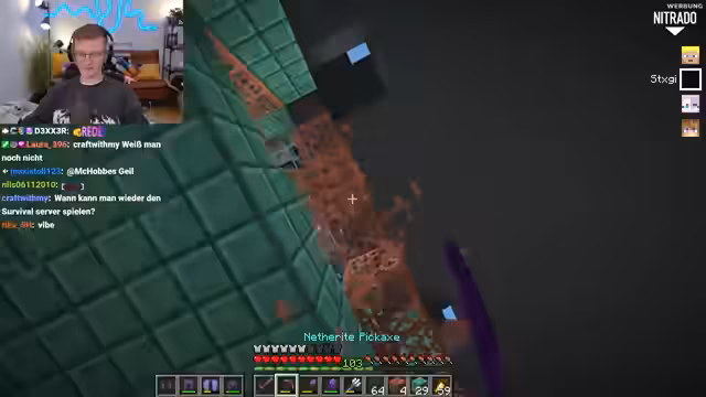 10:16:32Es treten technische Probleme auf, die den Gameplay-Fortschritt behindern. Konkret wird ein Elytra-Launcher buggy und unzuverlässig beschrieben, wahrscheinlich durch asynchrones Mob-Ticking des Servers verursacht. Der Streamer erkennt das Problem und versucht es zu beheben, während er für die Zukunft Lösungen wie einen Server-Restart in Betracht zieht. Gleichzeitig wird ein funktionsfähiger Breeze-Launcher gezeigt, der als einfacheres und effektiveres Konzept präsentiert wird, um mit dem Glitch umzugehen.