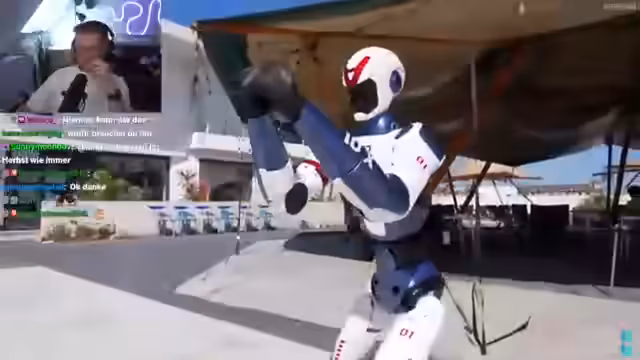 01:06:44Eine weitere Hauptbeschäftigung im Stream ist die Vorstellung des Unitree R1 Humanoiden Roboters für 5.900 Dollar. Der Streamer zeigt großes Interesse an dieser Technologie und denkt über den Kauf nach. Er hat bereits Ideen, wie er den Roboter in seinen Streams nutzen könnte: Boxturniere gegen andere Roboter, Koch-Challenges oder gar als Streamer-Assistent. Er überlegt auch, ob er den Roboter auf der IFA in Berlin vorführen lassen könnte und kontaktiert dazu seinen Mitstreiter Hugo, um eventuell gemeinsam einen zu kaufen.
