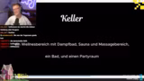 00:43:04Ein kleiner Zwischenstand der Challenge wird präsentiert. Der Streamer zeigt drei Einsendungen von Teilnehmern, die als Inspiration dienen. Das erste Haus, entworfen in "The Sims", präsentiert sich als modernes, großes Einfamilienhaus mit Pool, Yoga-Raum und einem gut ausgestatteten Keller mit Wellnessbereich und Partyraum. Der Streamer analysiert das Gebäude, lobt bestimmte Features wie offene Wohnbereiche und Kochinseln, gibt aber auch konstruktive Kritik an der Form und dem Design.