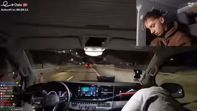 00:25:04Die Gruppe setzt ihre Fahrt nach Oslo fort und diskutiert über die Länder, die sie innerhalb von 24 Stunden durchqueren werden. Es wird festgestellt, dass sie gestern in Dänemark und Schweden waren und heute bereits in Norwegen sein werden. Hugo navigiert und sucht nach einem geeigneten Restaurant für das Frühstück. Die Gruppe diskutiert über die Fahrtrichtung und die Notwendigkeit, in Richtung Oslo zu fahren. Es wird kurz über das Spiel Marvel Rivals gesprochen. Die Zuschauer werden aufgefordert, Vorschläge in den Chat zu schreiben, was jedoch zu unerwünschten Nachrichten führt. Die Dauer der Tour wird auf mindestens ein Jahr geschätzt. Die Gruppe kämpft mit der Technik und versucht, das Lenkrad richtig einzustellen. Es wird festgestellt, dass sie sich in einem Industriegebiet befinden. Die Gruppe sucht nach einem Frühstücksort und erwähnt Jimmy and Jones in Göteborg als mögliche Option. Es wird eine Route zu Jimmy and Jones in New York gestartet. Die Gruppe spricht über frühere Streams und Interaktionen mit Zuschauern. Heiko wird gefragt, wie jemand seinem Jam beigetreten ist. Die Gruppe diskutiert über die Straßenführung und die Fahrweise. Es wird erwähnt, dass jemand einen Führerschein hat, aber selten Auto fährt. Die Gruppe scherzt über das Autofahren und mögliche Unfälle. Es wird über das Atmen und die Mikrofone gesprochen. Die Gruppe grüßt die Zuschauer und kommentiert eine Zugbrücke. Es wird über das Stream-Setup und die Vorschläge der Zuschauer diskutiert. Die Gruppe begrüßt einen Reaction-Streamer und spricht über Unfallstatistiken und Fahrverhalten. Es wird über vorausschauendes Fahren und das Vertrauen in andere Fahrer diskutiert. Die Zuschauer werden aufgefordert, in der Osloer Innenstadt Auto zu fahren. Es wird über Audi und Sub-Zahlen gesprochen. Die Gruppe reagiert auf die Scandi-Tour von Heiko und Pfizer und begrüßt Letzugo im Chat.