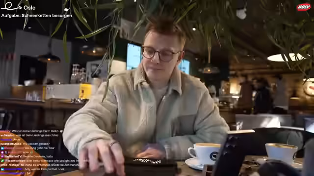 01:47:20Es wird erwähnt, dass bei einem der Spots möglicherweise etwas mit dem Vermieter gemacht werden kann, da der Owner angeboten hat, Sachen zu zeigen. Es wird vermutet, dass reiche Leute immer krasse Sachen zu zeigen haben und nur flexen wollen. Es wird überlegt, ob man links abbiegen muss. Es wird festgestellt, dass man nicht wie ein Opfer mit dem Handy aussehen will und es praktischer ist, die Zuschauer zu sehen. Es wird über Schneeketten gesprochen und dass man gucken muss, wie groß die Reifen sind, da Schneeketten nicht universal sind. Es wird erwähnt, dass man für einen Tesla extra Schneeketten kaufen muss. Es wird über den weiteren Verlauf der Tour gesprochen: Heute Oslo, morgen Geilo, übermorgen Bergen, dann ins Gefängnis (als Witz) und dann ist die Tour am 17. vorbei. Es wird überlegt, wo man Schneeketten kaufen kann und ob man einfach XXL-Ketten mit Kabelbindern fixieren kann.