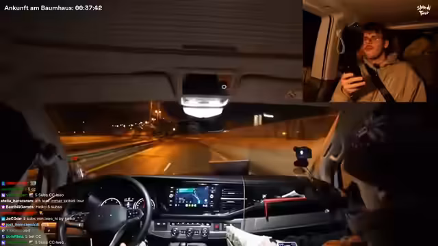 00:09:25Der dritte Tag der Skandi-Tour beginnt mit Kevin, Marvin und Heiko, die die Zuschauer begrüßen. Es herrscht direkt morgens eine heitere Stimmung, obwohl Heiko müde wirkt. Die Gruppe diskutiert über den Verbleib eines Autoschlüssels und scherzt darüber, den Tag zu Fuß fortzusetzen. Es wird erwähnt, dass Heiko früh wach war und TikToks geschaut hat. Ein Zuschauer namens HF Chemie wird für sein sechsmonatiges Abonnement gedankt. Die Gruppe kündigt an, dass sie heute nach Oslo fahren werden, was eine etwa dreistündige Autofahrt bedeutet. Gestern wurde festgestellt, dass die täglichen Fahrzeiten konstant bei etwa drei Stunden liegen, was die gute Planung der Tour unterstreicht. Es wird spekuliert, dass in Oslo möglicherweise gerodelt wird, falls die Umstände passen. Die Ankunftszeit in Oslo wird auf etwa 15 Uhr geschätzt, wobei zuvor noch eine Stunde für das Essen und eine weitere Stunde zum Packen eingeplant sind. Eine Empfehlung für Max Burger auf dem Weg wird ausgesprochen, obwohl Bedenken wegen möglicher hoher Kosten bestehen. Es wird eine Anekdote über eine frühere Interaktion mit Zuschauern erzählt, bei der diese unerwartet vor dem Bett der Streamer standen, was zu humorvollen Kommentaren führt. Die Gruppe plant, in Göteborg nach einem Frühstücksladen zu suchen, da sie keine Lust auf Burger zum Frühstück haben. Ein Fanart wird gezeigt und gelobt, das von einem Zuschauer erstellt wurde, der das Hausboot besucht hat und dessen Werk von allen Beteiligten signiert wurde. Mehrere Zuschauer werden für ihre Unterstützung gedankt, bevor die Gruppe aufbricht.