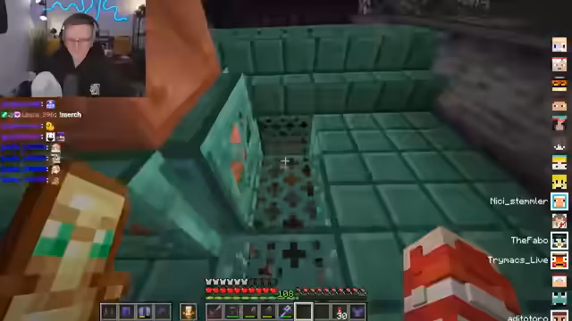 00:14:34Es findet eine Diskussion über den bevorstehenden Twitch Recap statt, bei dem spekuliert wird, welche Streamer der Host dieses Jahr am meisten gesehen hat. Anschließend widmet man sich wieder dem Bauvorhaben in Minecraft, wobei der Fokus auf der Fertigstellung der Containerstruktur liegt. Es wird darüber debattiert, ob zunächst dekoriert oder die wichtige Infrastruktur wie Treppen gebaut werden soll. Ein Zuschauer weist zudem darauf hin, dass ein Container eine offene Tür benötigt.