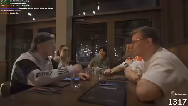 02:53:54Nach technischen Neustarts konzentriert sich der Streamer darauf, die anderen Teammitglieder zu finden und wartet auf sie vor einem Restaurant. Die Situation bleibt angespannt, da das Team sich im Parkhaus verlaufen hat. Schließlich treffen die anderen ein, und es kommt zu einer kurzen emotionalen Diskussion über die verpasste Begegnung und das anschließende gemeinsame Betreten des Restaurants.