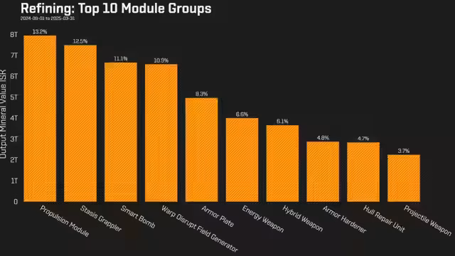 Analyse von Erzabbau, Raffinerieprozessen und Produktionswert in EVE Online
