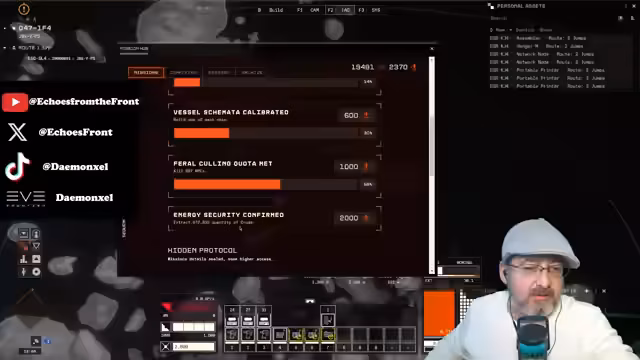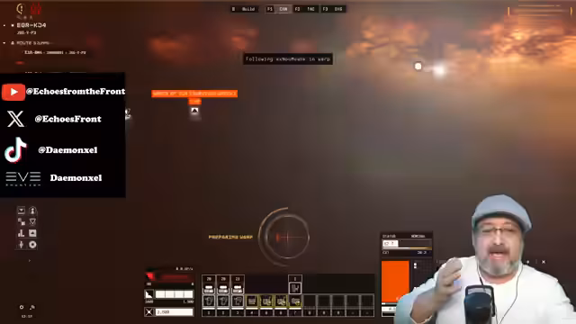 00:00:27Der Stream startet als "Frontier Friday" mit Damon Zell vom Kanal "Echoes from the Front". Er stellt sich vor und erklärt, dass er hauptsächlich YouTube-Inhalte erstellt, aber für diesen Gaststream auf CCPs Kanal ist. Der Streamer berichtet, dass er technische Schwierigkeiten mit seiner Ausrüstung hat und falsch eingestellt ist, da er noch nicht genug Kaffee zu sich genommen hat, was seine Konzentration beeinträchtigt.