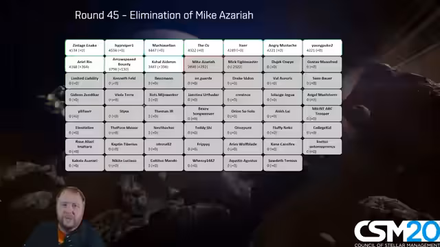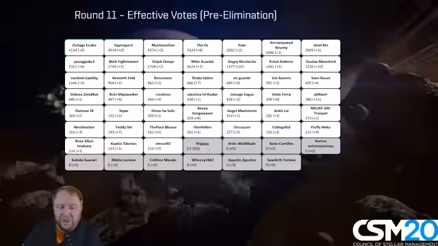 01:30:33Die Wahl wird zunehmend spannender, da die Abstände zwischen den Kandidaten geringer werden. Machiavellian wird gewählt, gefolgt von The Oz und Itair, die ebenfalls die notwendige Stimmschwelle überschreiten. Die Eliminierung von Kandidaten in den späteren Runden führt zu erheblichen Verschiebungen, da ihre Stimmen auf die verbleibenden Kandidaten verteilt werden. Besonders hervorzuheben ist Kashal Adron, die durch das Sammeln vieler übertragener Stimmen einen beeindruckenden Aufstieg erlebt und sich in die Top 10 vorkämpft. Auch Angry Mustache und Young Puke werden gewählt. Am Ende des Prozesses stehen die zehn gewählten CSM-Mitglieder fest: Zinti Janaka, Hyperviper, Machiavellian, The Oz, Itair, Angry Mustache, Young Puke, Ariel Wren, Arrow Speed Bounty und Kashal Adron. Diese Kandidaten repräsentieren verschiedene Spielergruppen und Regionen im Spiel, von Goons über Barcode Alliance bis hin zu LowSec- und Faction Warfare-Gruppen.