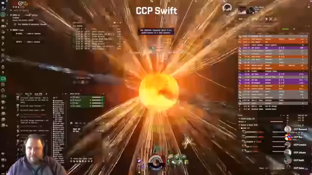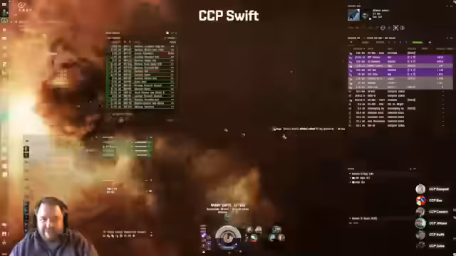 01:39:41Die Flotte richtet ihre Aufmerksamkeit auf eine sogenannte ESS-Heist (EVE-Security-System), bei der ein Feind namens Pudding Hunter eine wertvolle Belohnung abholt. Das Team agiert als Ablenkung, um der eigentlichen Heist-Gruppe Zeit für den Abzug zu verschaffen.