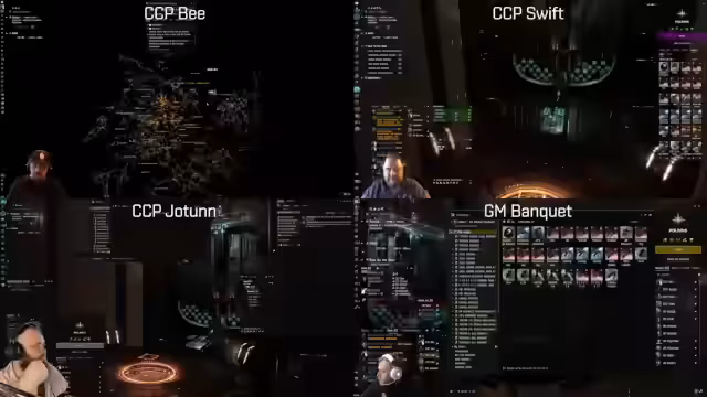 00:05:03Der Stream beginnt unter dem Titel LIVE2FEED #79. Czpb begrüßt das Team, das aus Czpswift, Banquet, Zealous und Jotun besteht, der sich kurz neu einloggen muss. Man erkennt an, dass es ein Freitag ist und man mit den Boysen starten wird. Zunächst geht es darum, die Module zu verwalten und zu organisieren. Der Streamer erwähnt, dass er eine Rüstung mit einem einzelnen Wrap und zwei Remote-Sebooster verwendet und erstmals seit der Änderung an den Filamenten im Revenant-Update Filamentierung betreiben wird, was einen längeren Anlaufzeitpunkt erfordert. Die Flotte setzt sich aus Loki, zwei Kestrels und dem Command-Ship zusammen und erhält Anweisungen zur Taktik.