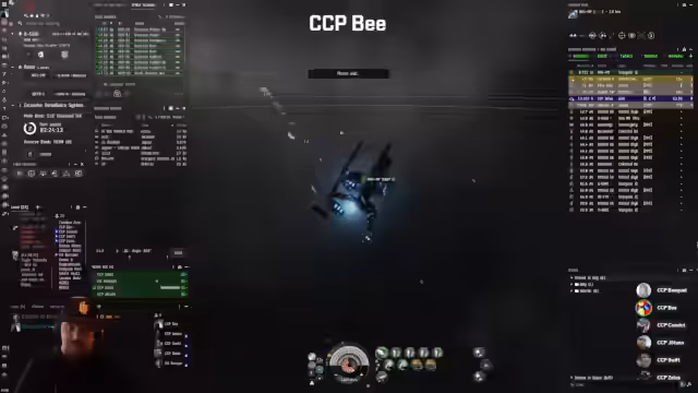 00:07:04Die Flotte stößt auf einen Hulk in der Nähe des HPA- oder QE-Gates und entscheidet, ihn anzugreifen. Die Kestrels sollen versuchen, den Hulk abzufangen, während der Streamer selbst versucht, ihn abzulenken. Nachdem der Hulk in einen Anomaly warp, folgt ihm die Flotte. Anschließend gerät die Flotte in eine Auseinandersetzung mit feindlichen Tacklern, darunter ein Malediction und ein Stiletto. Der Streamer gibt Befehle, die feindlichen Schiffe anzugreifen, und die Flotte verfolgt diese, wobei es zu mehreren Kämpfen mit kleineren Schiffen kommt. Der Fokus liegt darauf, die Feinde zu tackeln und zu eliminieren, während die eigenen Schiffe aggro sind.