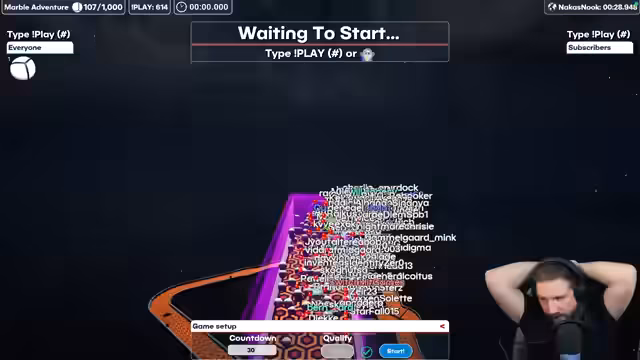 01:58:26Nachdem die Diskussion über die Escalations beigelegt ist, startet der Streamer ein Giveaway. Um teilzunehmen, müssen die Zuschauer den persönlichen Kanal 'SwitchHitGames' besuchen, diesem folgen und im Chat den Befehl '!play' eingeben. Der Hauptpreis ist ein Media Miasma Skin. Dabei werden die Anweisungen wiederholt und auf Bots im Chat hingewiesen.