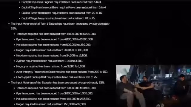 00:42:56Die Planetary Interaction (PI) Templates, die ursprünglich auf dem chinesischen Server entwickelt wurden, sind nun für alle Spieler verfügbar und wurden durch Funktionen wie das Benennen von Templates verbessert. Eine Neustart-Taste für alle Planeten auf einmal wurde hinzugefügt. Die Verkaufssteuer wurde von 4 % auf 7,5 % erhöht, um die Inflation zu bekämpfen. Diese Entscheidung wurde vom EVE Economic Council getroffen, um die Wirtschaft im Spiel zu stabilisieren. Die Effektivität von Mercenary Dance beim Ausstoß von Infomorphs wird reduziert. Die Baukosten für Attack 1 Dreads und andere Capitals wurden gesenkt, um mehr von ihnen im Weltraum zu sehen. Die Kosten für den Bau von Schlachtschiffen wurden um 25 % erhöht, da sie im Vergleich zu Faction-Varianten zu wertvoll waren. Die Reprocessing-Materialien für Combat Battlecruisers und Attack Battlecruisers wurden aktualisiert, um die Effizienz zu verbessern. Es gibt eine Anzeige der Anzahl der Skillpunkte in der Warteschlange und Icons für den Status von Drohnen im Drohnenfenster.