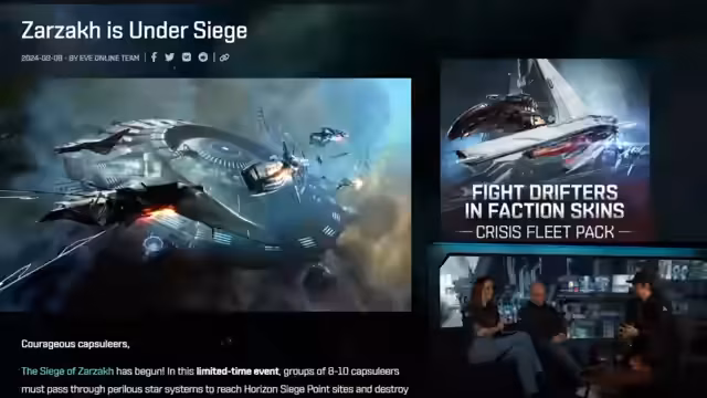 00:58:52CCP Lumi und CCP Wanderer werden als Gäste begrüßt, um über die Drifter-Crisis zu sprechen. CCP Wanderer äußert Nervosität, versehentlich Spoiler preiszugeben. Der Fokus liegt auf der Drifter-Crisis und dem Race for the Hives, der am Vortag begann. Es wird ein Rückblick auf September letzten Jahres gegeben, um den Wiederaufstieg der Drifter im Zusammenhang mit der Belagerung von Sarsak zu erklären. Die Drifter fanden etwas in Zarzak und griffen in En Masse an, um es zu erreichen. Kapsulier reagierten und brachen die Belagerung.
