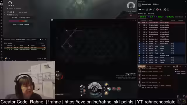 00:11:12Der Stream schwenkt zur Gameplay-Sektion, in der der Host das Schiff in den NullSec-Raum manövriert. Das Ziel ist das Finden von Relic- und Data Sites, die in diesen Gebieten tendenziell besser sind und weniger bevölkert sind. Während der Erkundung wird die Karte des Systems analysiert und nach Informationen über Schiffszerstörungen in der letzten Stunde gesucht. Ein roter Spieler im lokalen Chat wird gesichtet, was zu einer erhöhten Wachsamkeit und zur Entscheidung führt, den Ort zu verlassen, um einem potenziellen Kampf aus dem Weg zu gehen.