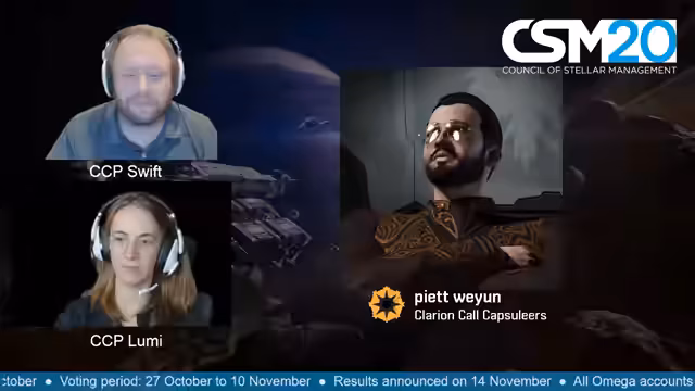 Im vierten Teil der Interviewreihe mit CSM-20-Bewerbern erläutern Kandidaten ihre Prioritäten. Themen sind unter anderem die Balance von Schiffen und Waffen, Wirtschaftssysteme sowie Vorschläge zur Verbesserung der Spielerfahrung. Die Diskussionen konzentrieren sich auf langfristige Entwicklungsstrategien für das Spiel.