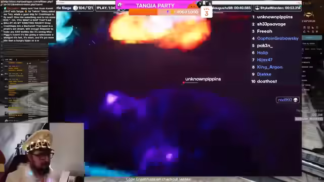 05:14:49Nach einer erfolgreichen Aktion bittet der Streamer Zuschauer wie Jackalus, sich mit 'Boobies' zu treffen. Ein Kämpfer wird als 'absoluter Brocken' und riesig beschrieben. Es kommt zu einer Konfrontation mit einer größeren Flotte, die als Bait oder als echter Angriff interpretiert wird. Trotz des Verlusts wird die Erfahrung als 'spaßig' und 'intensiv' bezeichnet, und die Gegenpartei wird als 'Gangbang Team' von Fountain identifiziert.