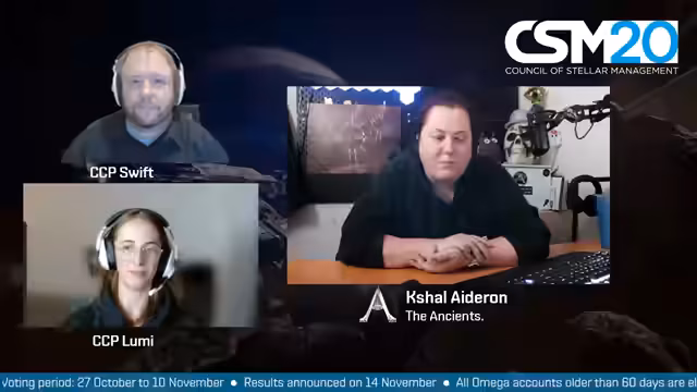 Es wurden mehrere Kandidaten für den Rat der stellaren Verwaltung interviewt. Im Mittelpunkt standen die Verbesserung der Neulings-Erfahrung und die Vertretung kleinerer Spielergruppen. Die Kandidaten brachten unterschiedliche Perspektiven aus den Bereichen Industrielle, Solo-Spieler und Bewohner von Wurmlöchern ein.