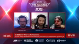 03:13:05Der Stream beginnt mit der Ankündigung wertvoller Skins, die für Siege im Thunderdome-Modus verliehen werden. Diese können entweder verkauft oder für das Aussehen der Charaktere genutzt werden. Anschließend begrüßt der Moderator die Zuschauer und führt die Analysten Misty und Nova vor, die die anstehenden Banns und Schiffsauswahl für das erste Match diskutieren.