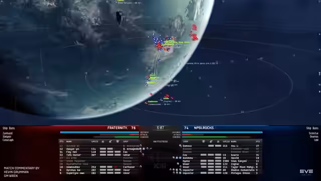 05:14:39Das Spiel entwickelt sich zu einem erbitterten Kampf, in dem beide Teams Schiffe im Tausch tauschen. NPSI Rocks initiierte die Zerstörung der Deacons, was jedoch als Fehlentscheidung bewertet wird, da die High-DPS Confessor von Fraternity unangetastet blieb. Stattdessen hätte NPSI Rocks diesen Confessor, der bis zu 500 DPS liefert, mit Web-Unterstützung schnell ausschalten müssen, um den Angriffsbalken von Fraternity entscheidend zu schwächen. Das Fehlen von Repair-Bots in Drone-Comps wird ebenfalls als ein strategischer Nachteil herausgestellt, da Teams ihre gesamten Drone-Slots für Schaden einsetzen müssen und keine Reparatur-Kapazität haben, was in diesem engen Match den Unterschied ausmachte.